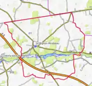 Les distances entre parenthèses indiquent, en kilomètres, les positions des lieux-dits et écarts par rapport au bourg par la route : les Roullets (1,3 km) ; la Ratonnierie (2 km) ; les Charpantiers (2,6 km) ; les Chalumeaux (3,3 km) ; les Bordes (2,4 km) ; les Dupuis (1,4 km) ; la Sauvagerie (3 km) ; le Buisson (0,5 km) ; Bouttcourt (2 km) ; les Bellemains (1,5 km).