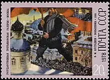 En 1978 pour le centième anniversaire de la naissance du peintre Koustodiev (1878—1927), une série de cinq timbres a été tirée avec l'image du Bolchévik[61],[62].