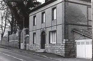 Édifié en 1868, le bâtiment visible sur cette photographie d'époque abritait déjà la mairie et l'école des garçons[16]. L'école fut ensuite transférée dans l'école des filles à la suite de la généralisation de la mixité et l'ancienne école des garçons devint la bibliothèque intercommunale Anatole-Loth.