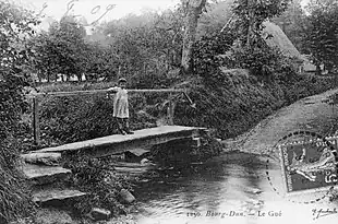 La Rue d'Enfer, située dans le centre-bourg et parallèle à la route principale, marque l'endroit ou jadis une voie romaine traversait le Dun par un gué[20].