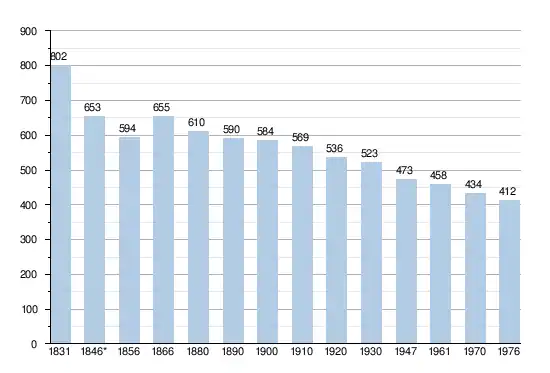 - Source: DGS, 1831 à 1970=recensements population, 1976= habitants au 31 décembre