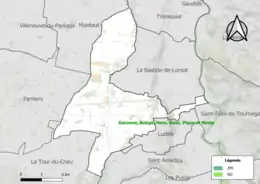 La commune est composée de plusieurs villages et hameaux. Le village central est la Bardaille où se trouve la mairie et la salle des fêtes. L'église se trouve au Carlaret même.