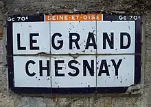 | Détails | Armes parlantes : un chêne auquel est suspendu l'écu de la famille de Bernières. C'est à l'un des descendants de cette famille, Charles III Maignard de Bernières, qu'est attribué la construction du château du Grand Chesnay. Ces armoiries figurent au fronton de la mairie. Le statut officiel du blason reste à déterminer. |