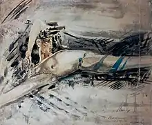 « À côté du salon se trouvait une petite pièce séparée par une arcade. C'est là qu'était posée, de la fenêtre au mur, sur toute la longueur de la pièce, une toile immense. Vroubel, avec une ficelle et du charbon de bois l'a séparée en différents carrés. Il était fort enthousiaste et le manifestait. « Je commence ! » dit-il. »