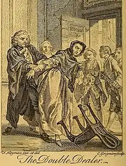 Lady Touchwood a persuadé Sir Paul que Mellefont est amoureux de sa femme, Lady Plyant, et que son projet de mariage avec Cynthia n’est qu’un prétexte pour s’approcher d’elle et la séduire. À la scène 4, Sir Paul et Lady Plyant, furieux, s’en prennent à Mellefont, interloqué.