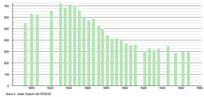 Jusqu'en 1971, la démographie de Camelin-et-le-Fresne était :