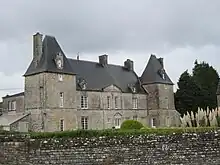 - Manoir du Mesnildot (début XVIIe siècle[34]) : le corps principal est flanqué de deux pavillons latéraux qui s'éclairent par des demi-fenêtres. Un fort chaînage horizontal ceinture complètement l'édifice, séparant ainsi le rez-de-chaussée du premier étage. Les baies sont toutes à linteaux droits.