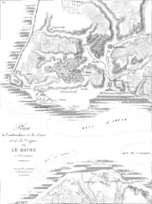 Administrativement, Le Havre est une commune de la région Normandie qui se trouve dans l'ouest du département de la Seine-Maritime. L'unité urbaine du Havre correspond à peu près au territoire de la Communauté de l'agglomération havraise (CODAH)[3] qui regroupe 17 communes et 250 000 habitants[4]. Elle occupe la pointe sud-ouest de la région naturelle du pays de Caux, dont elle est la plus grande ville.