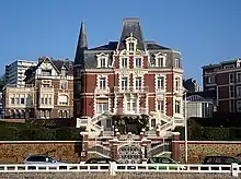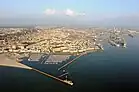 ![]() ![]() ![]() ![]() ![]() ![]() De haut en bas, de gauche à droite : Le Centre-ville du Havre et l'Église Saint-Joseph ; la Cathédrale Notre-Dame du Havre ; le Palais de Justice ; le Bassin du Commerce ; le Port du Havre ; Le Havre vue depuis la mer. |