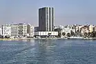 De haut en bas, de gauche à droite : vue panoramique de la partie ouest de la ville et du port du Pirée ; théâtre municipal ; vestiges des fortifications antiques et tour du Pirée.