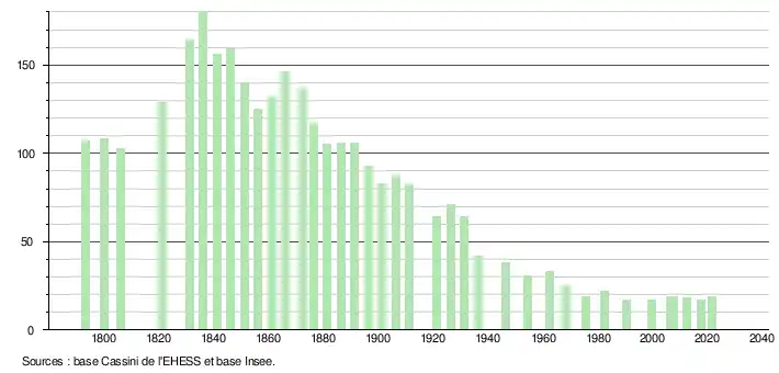 (Sources : Ldh/EHESS/Cassini jusqu'en 1999[19] puis Insee à partir de 2006[20].)