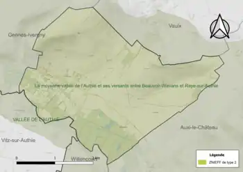 Le territoire communal comprend une ZNIEFF de type 2[Note 2] : la moyenne vallée de l’Authie et ses versants entre Beauvoir-Wavans et Raye-sur-Authie. Cette ZNIEFF de la moyenne vallée de l’Authie comprend une organisation paysagère régulière avec le fond de vallée humide, des versants calcaires, pentes boisées et hauteurs cultivées[10].