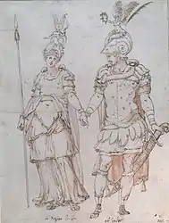 On retrouve également des dessins de statues, de Muses, de costumes pour les mascarades.