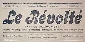 Sous le même titre est édité, à l'origine par le Groupe révolutionnaire de Bruxelles, de 1907 à 1914, un « Organe de propagande anarchiste paraissant au moins une fois par mois »[16].