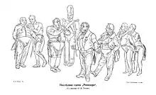 « Le directeur des postes : Une affaire étonnante, Messieurs : le fonctionnaire que nous avions pris pour le revizor, ce n'était pas le revizor.