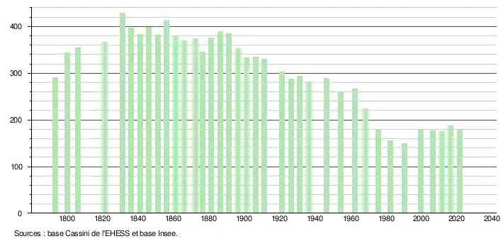 - Fiches Insee - Populations légales de la commune pour les années 2006, 2007, 2008, 2009, 2010, 2011, 2012, 2013, 2014, 2015, 2016, 2017, 2018, 2019, 2020 et 2021.
