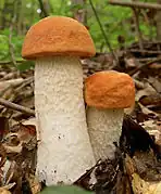 - Leccinum aurantiacum, le Bolet orangé des chênes, a un stipe couvert de mèches rousses et vient surtout sous chênes.