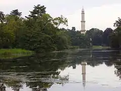 Cette construction romantique, haute de 60 mètres, date de 1797–1802. Elle est construite dans le style mauresque sur les plans de Joseph Hardtmuth, maître d'œuvre autrichien recruté par Aloïs pour ses talents d'architecte et d'aménageurs paysagers. Elle se veut un hommage aux nombreux apports turcs et orientaux musulmans à la civilisation autrichienne, ainsi qu'à l'art des fleurs et des jardins.