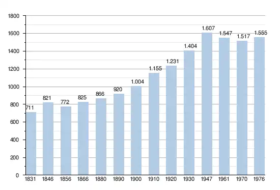 - Sources : INS, Rem. : 1831 jusqu'en 1970 = recensements, 1976 = nombre d'habitants au 31 décembre.