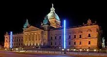 ![]() ![]() ![]() ![]() ![]() ![]() De gauche à droite et de haut en bas : le centre-ville vu depuis Fockeberg, le monument de la Bataille des Nations de nuit, le tribunal administratif fédéral, l'ancien hôtel de ville sur la place du marché, la gewandhaus sur l'augustusplatz avec la city-hochhaus en arrière-plan et le gondwanaland au jardin zoologique. |