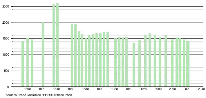 - Fiches Insee - Populations légales de la commune pour les années 2006, 2007, 2008, 2009, 2010, 2011, 2012, 2013, 2014, 2015, 2016, 2017, 2018, 2019, 2020 et 2021.