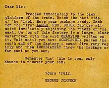 Après leur repas, ils vont cacher le corps dans une forêt près du lac Wolf (en), à proximité de la frontière entre l'Illinois et l'Indiana, non loin du quartier de Hegewisch (à l'extrémité sud-est de Chicago)[22]. Ils rentrent chez eux et appellent la mère de la victime pour lui dire que son fils a été enlevé, puis envoient une série d'instructions pour le paiement de la rançon de 10 000 dollars. En attendant, ils passent la soirée à jouer aux cartes.