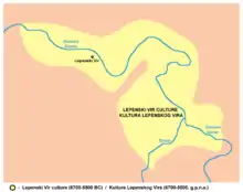 Lepenski Vir (en serbe cyrillique : Лепенски Вир, signifiant « Tourbillon des tilleuls ») est un site archéologique du Mésolithique et du Néolithique situé sur la rive sud du Danube, dans les gorges des Portes de Fer, en Serbie orientale. En raison de son importance, il figure sur la liste des sites archéologiques d'importance exceptionnelle de la République de Serbie[1].