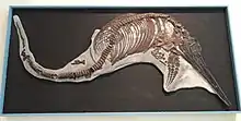 Nageoire de Leptonectes exposé au musée géologique de Copenhague.