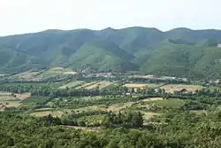 L'occupation des sols de la commune, telle qu'elle ressort de la base de données européenne d’occupation biophysique des sols Corine Land Cover (CLC), est marquée par l'importance des forêts et milieux semi-naturels (86,5 % en 2018), une proportion sensiblement équivalente à celle de 1990 (87,8 %). La répartition détaillée en 2018 est la suivante : forêts (86,5 %), zones agricoles hétérogènes (6,5 %), zones urbanisées (2,2 %), terres arables (2,1 %), cultures permanentes (1,5 %), mines, décharges et chantiers (1,2 %)[18]. L'évolution de l’occupation des sols de la commune et de ses infrastructures peut être observée sur les différentes représentations cartographiques du territoire : la carte de Cassini (XVIIIe siècle), la carte d'état-major (1820-1866) et les cartes ou photos aériennes de l'IGN pour la période actuelle (1950 à aujourd'hui)[Carte 1].