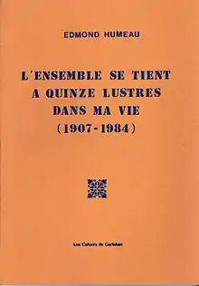 - L'ensemble se tient à quinze lustres dans ma vie (1907-1984)[8], recueil de poèmes de Edmond Humeau.