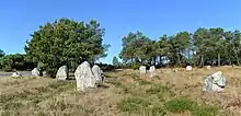 L'ensemble a été érigé sur un plateau culminant à 50 m d'altitude[1]. Il se compose désormais de 29 menhirs debout ou renversés (23 en quartz blanc, 5 en schiste et 1 en grès) de forme très irrégulière dessinant au moins quatre alignements et un tertre tumulaire[1].