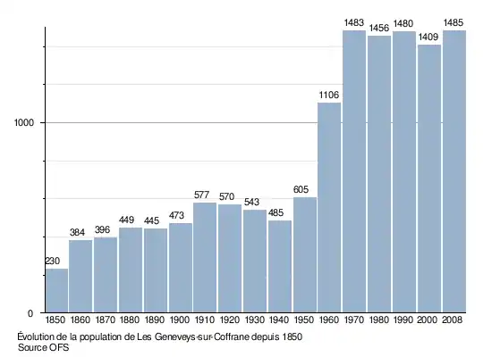 Le graphique suivant résume l'évolution de la population des Geneveys-sur-Coffrane entre 1850 et 2008[4] :