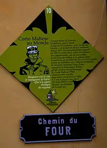 Statue de Corto Maltese à Grandvaux. - Le canton du Valais (VS), longé par la Vallée du Rhône, regorge de témoignages de l'Histoire. Le Château de la Bâtiaz à Martigny a subi les guerres de Bourgogne ; le bourg médiéval de Saillon est un des mieux conservés du pays ; la Tour des Sorciers est un des derniers vestiges de l'ancien vidomne de Sion. À cela s'ajoutent les vestiges du château de Tourbillon et la basilique de Valère, cités plus haut. Quant à l'imposant Château de Stockalper à Brigue, il montre la richesse du marchand Gaspard Jodoc Stockalper, surnommé le « Roi du Simplon » et qui prospéra lors de la guerre de Trente Ans... Ces monuments du canton sont aussi impressionnants que ses sites naturels, avec le glacier du Trient (où les gorges du même nom sont sombres comme le Styx) ou avec les sommets argentés de l'Eiger et de la Jungfrau — qui signifie littéralement « jeune femme ». Les paysages y permettent ainsi à des cépages de prospérer, comme le fendant, le rèze (de) et l'amigne. Enfin, Nendaz est considérée comme capitale internationale du cor des Alpes, long instrument à vent souvent associé à la Suisse (bien qu'on en trouve dans d'autres pays d'Europe).