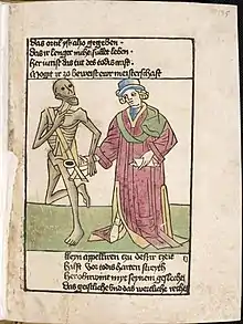 Illustration de la danse macabre du Codices Palatini germanici. L'homme à droite est reproduit dans une vignette de l'album, s'adressant à Corto et disant s'appeler Ulrich von Zatzikhoven. - Dans la bibliothèque de Hermann Hesse figurent nombre de volumes, parmi lesquels Faust, des livres de Gottfried Keller (tel que ses Nouvelles zurichoises (de)), de Goethe... Et même une présence anachronique servant d'hommage, puisqu'on y voit la bande dessinée Silence du belge Comès, ami de Pratt, publiée dans le mensuel (À suivre) en 1979. Le bédéiste rend aussi hommage à Hesse et ses écrits, en particulier Le dernier été de Klingsor (de) et Demian (1919, qu'il écrivit sous le pseudonyme d'Emil Sinclair).