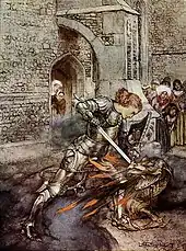 On trouve aussi la forêt où nombre de légendes se sont développées. L’univers Arthurien regorge de forêts effrayantes et peu fréquentables où règnent des êtres sauvages et féroces (dragons, fauves, géants…), On parle aussi d’« Autre Monde » provenant de croyances celtiques.