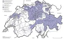 - (de) Cet article est partiellement ou en totalité issu de l’article de Wikipédia en allemand intitulé « Die Kunstdenkmäler der Schweiz » (voir la liste des auteurs).