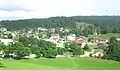 L'occupation des sols de la commune, telle qu'elle ressort de la base de données européenne d’occupation biophysique des sols Corine Land Cover (CLC), est marquée par l'importance des forêts et milieux semi-naturels (53,3 % en 2018), néanmoins en diminution par rapport à 1990 (54,6 %). La répartition détaillée en 2018 est la suivante : forêts (49,3 %), prairies (26,6 %), zones urbanisées (5,6 %), zones humides intérieures (4,6 %), milieux à végétation arbustive et/ou herbacée (4 %), espaces verts artificialisés, non agricoles (3,8 %), zones agricoles hétérogènes (2,9 %), eaux continentales[Note 3] (2,5 %), zones industrielles ou commerciales et réseaux de communication (0,7 %)[16]. L'évolution de l’occupation des sols de la commune et de ses infrastructures peut être observée sur les différentes représentations cartographiques du territoire : la carte de Cassini (XVIIIe siècle), la carte d'état-major (1820-1866) et les cartes ou photos aériennes de l'IGN pour la période actuelle (1950 à aujourd'hui)[Carte 1].