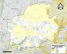 Le retrait-gonflement des sols argileux est susceptible d'engendrer des dommages importants aux bâtiments en cas d’alternance de périodes de sécheresse et de pluie[17]. 3,2 % de la superficie communale est en aléa moyen ou fort (27 % au niveau départemental et 48,5 % au niveau national métropolitain)[Carte 2]. Depuis le , en application de la loi ÉLAN, différentes contraintes s'imposent aux vendeurs, maîtres d'ouvrages ou constructeurs de biens situés dans une zone classée en aléa moyen ou fort[Note 2],[18].