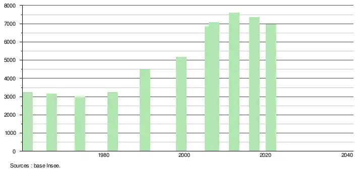 L'évolution du nombre d'habitants est connue à travers les recensements de la population effectués dans la commune depuis 1961, premier recensement postérieur à la départementalisation de 1946. À partir de 2006, les populations légales des communes sont publiées annuellement par l'Insee. Le recensement repose désormais sur une collecte d'information annuelle, concernant successivement tous les territoires communaux au cours d'une période de cinq ans. Pour les communes de moins de 10 000 habitants, une enquête de recensement portant sur toute la population est réalisée tous les cinq ans, les populations légales des années intermédiaires étant quant à elles estimées par interpolation ou extrapolation[13]. Pour la commune, le premier recensement exhaustif entrant dans le cadre du nouveau dispositif a été réalisé en 2007[14].
