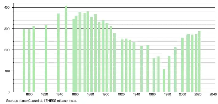 - Fiches Insee - Populations légales de la commune pour les années 2006, 2007, 2008, 2009, 2010, 2011, 2012, 2013, 2014, 2015, 2016, 2017, 2018, 2019, 2020 et 2021.