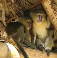 Deux jeunes lesula (Cercopithecus lomamiensis).