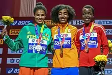- mais devant les trois athlète kényanes« women's 10000m IAAF World Athletics Championships Doha 2019 | iaaf.org », sur www.iaaf.org (consulté le )