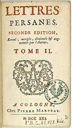 - Lettres persanes, t. II, Cologne, Pierre Marteau, (lire en ligne).