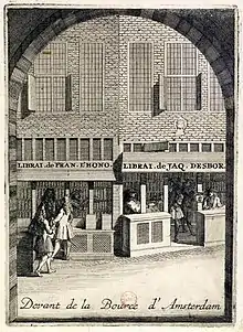 Pour compliquer le classement des livres par imprimeur, il existe un imprimeur-libraire Vve de Caux a Rouen. Elle est décédée en 1747 (Roméo Arbour, Dictionnaire des femmes libraires en France, 1470-1870, Droz, , 750 p. (ISBN 9782600008273, présentation en ligne), page 169). - Jacques Desbordes (1667-1718) est originaire de Saumur, fils de Jean Desbordes, libraire à Saumur puis à Leyde. Jacques Desbordes est inscrit à l'université de Leyde en février 1687 ; reçu comme bourgeois d'Amsterdam en qualité de relieur en juillet 1698 et membre de la guilde le 7 juillet. Il est auteur, traducteur et imprimeur. Après son décès sa veuve Suzanne de Caux continue l'entreprise.- Jacques Desbordes sur data.bnf.fr.