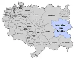 Leutkirch im Allgäu est une ancienne ville libre d'empire au sud-est du land de Bade-Wurtemberg. La ville est située dans l’Allgäu entre Memmingen et Wangen im Allgäu près de l’autoroute A 96. Leutkirch est la quatrième plus grande ville en nombre d’habitants du Landkreis (arrondissement) de Ravensburg après Ravensburg, Wangen et Weingarten. Avec une superficie de 175 km2, elle se situe après Stuttgart, Baiersbronn, Bad Wurzach et Ehingen (Donau) parmi les cinq communes les plus étendues du land.