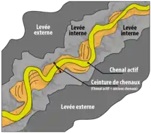 Les levées sont une conséquence naturelle des crues des rivières sinueuses qui transportent une proportion élevée de sédiments en suspension sous forme de sable fin, de silt et d'argile. La capacité de charge d'un fleuve dépend de son énergie elle même fortement liée à sa profondeur et diminue donc fortement en période de crue. L'eau qui recouvre alors les rives inondées du chenal n'est plus en mesure de maintenir en suspension la même quantité de sédiments fins que le thalweg principal. Les sédiments se déposent ainsi rapidement sur la plaine inondable aux abords du chenal. Cela se traduit généralement par la création de crêtes à ces emplacements[1].