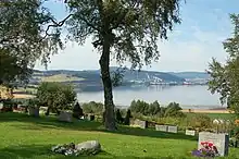 Vue de la forêt et du golfe de la Mer du Nord depuis le cimetière d'Alstadhaug .