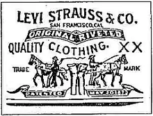 - 1886 : positionnement d'une étiquette de cuir au dos du pantalon portant le logo des deux chevaux. Les deux chevaux qui semblent tirer, dans des directions opposées, un pantalon, symbolisant la résistance du produit[8].