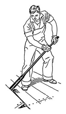 - levier inter-moteur : le point d'appui est à une extrémité du levier, la force résultante à l'autre, la force exercée se situe entre les deux. Exemples : le muscle biceps brachial, une batte de baseball, une fronde, une pagaie, un balai, une canne à pêche, une crosse de hockey, une pince à épiler et une pince à chiqueter, un coupe-ongles, un piège à souris, une pelle, une agrafeuse, une houe, une faux.