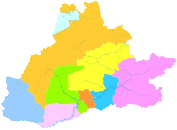 La ville-préfecture de Lhassa exerce sa juridiction sur huit subdivisions - trois districts et cinq xian. Les districts de Chengguan, Doilungdêqên et Dagzê comportent la majeure partie de la zone urbaine principale de Lhassa, située dans la vallée de la rivière Lhassa.
